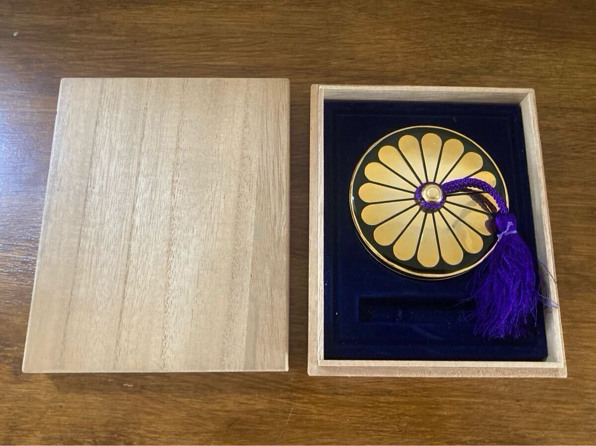 - 当時物/朱肉入れ/菊花紋章デザイン/ 菊の御門調/昭和レトロ/銀行印/菊御紋章/印泥/印鑑/文鎮/アンティーク/木箱