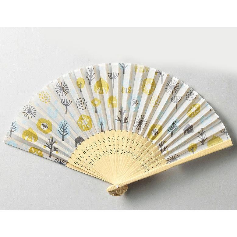 - 扇子 21cm 北欧ナチュラル柄 イエロー 黄色 せんす 100均