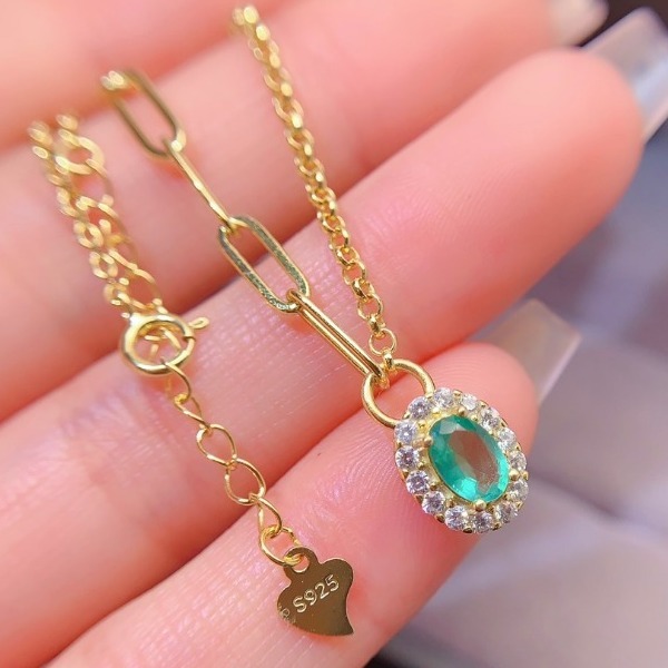 天然エメラルドペンダント、4x6mm、シルバージュエリー
