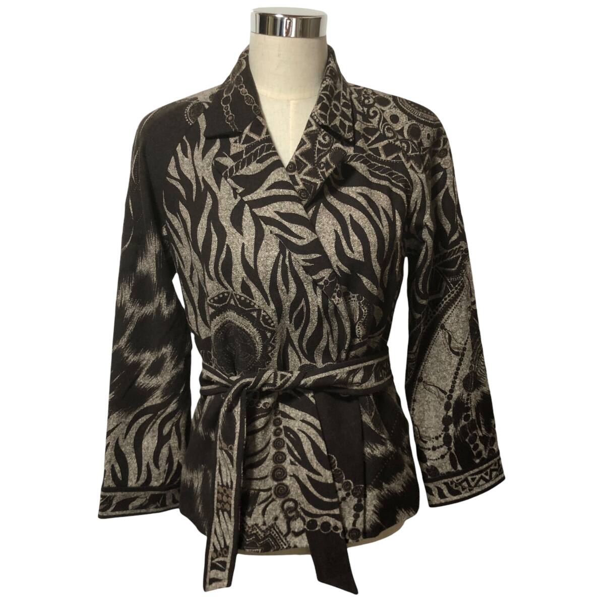 - LEONARD レオナール 総柄 ジャケット ウール シルク サンプル品 ダークブラウン グレー レディース A17
