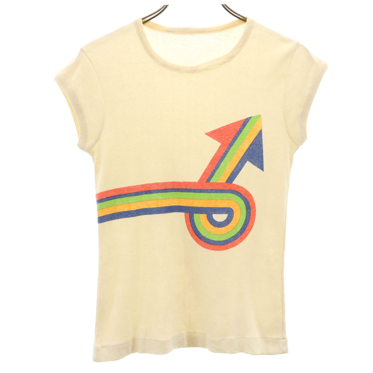 80s 90s オールド フレンチスリーブ Tシャツ L 生成り レディース