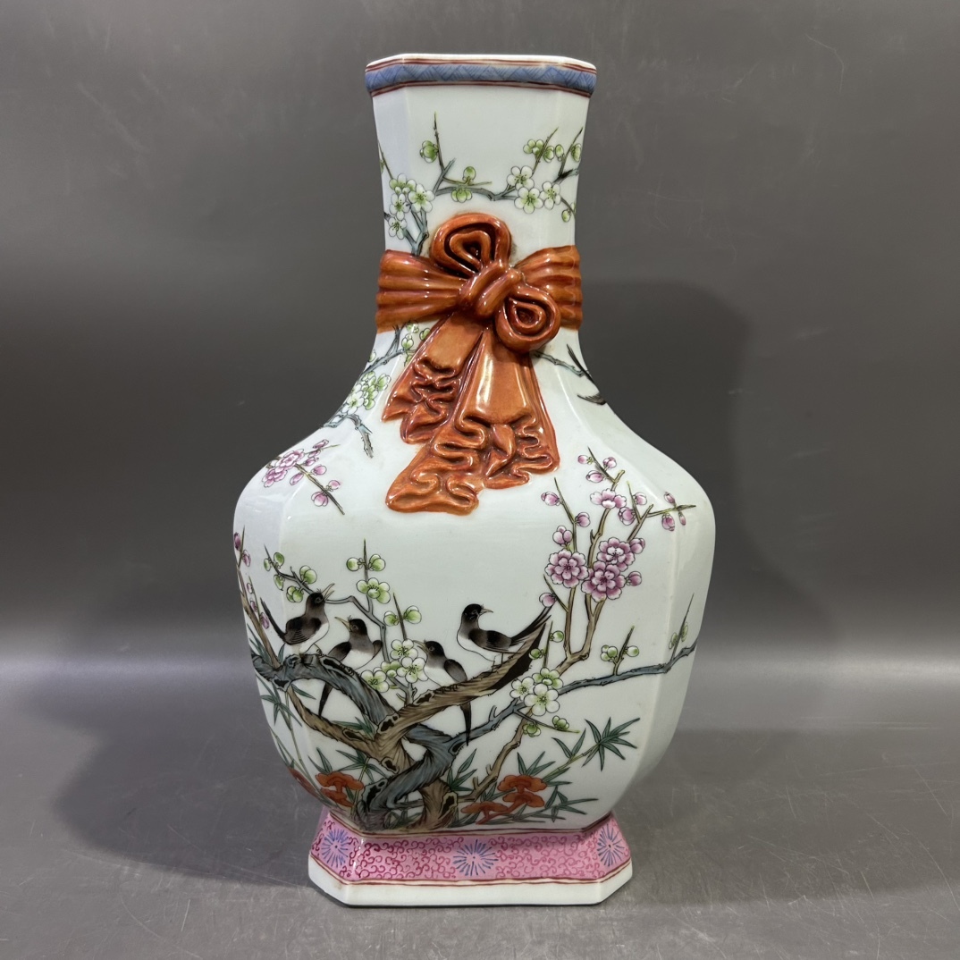 - ■BC148■大清乾隆年制款 粉彩喜上眉梢紋 四方器 時代物 古玩 唐物 古陶磁器■