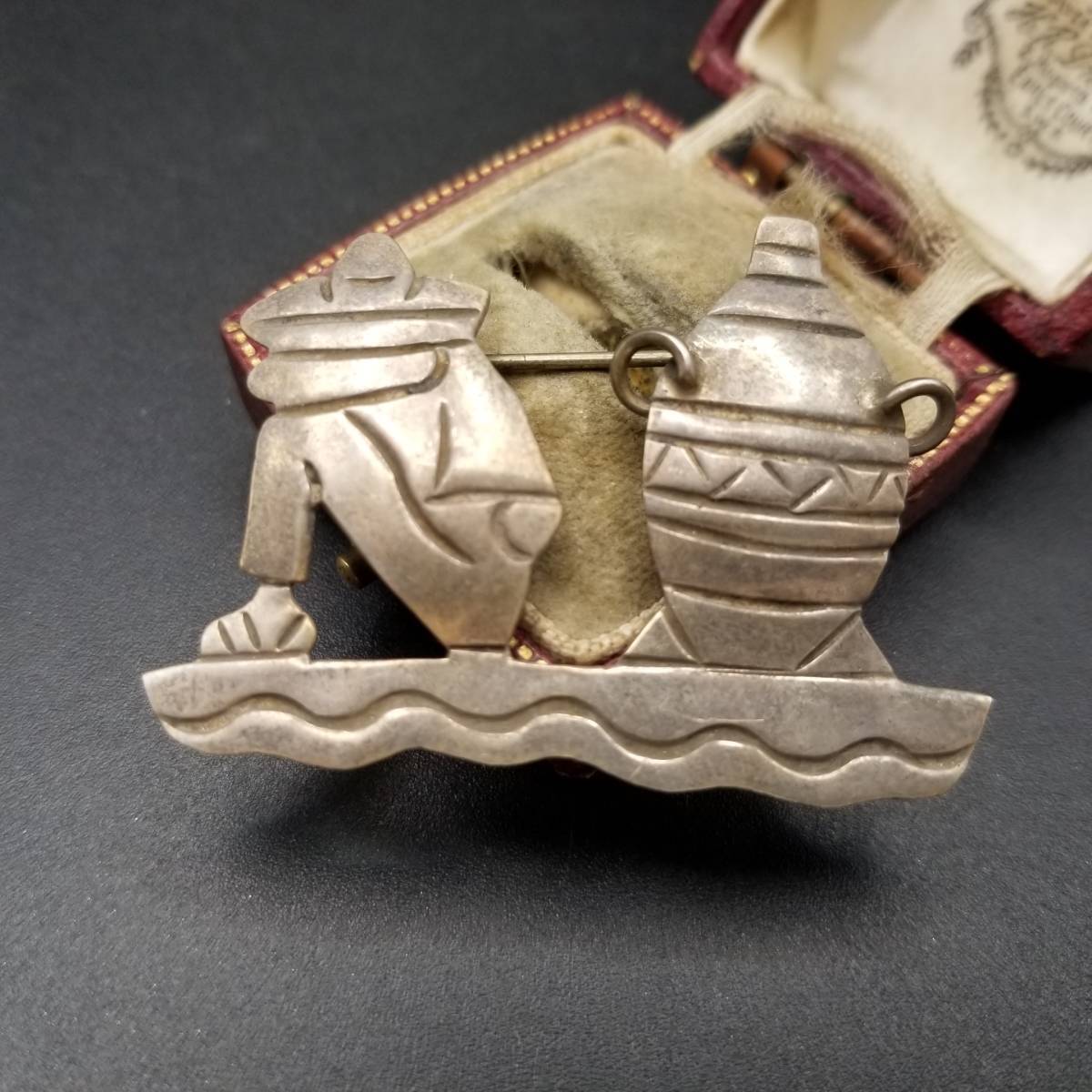 - メキシコ 休息 モチーフ 彫刻 存在感 925 ヴィンテージ シルバー ブローチ ジュエリー 輸入 Y11-US