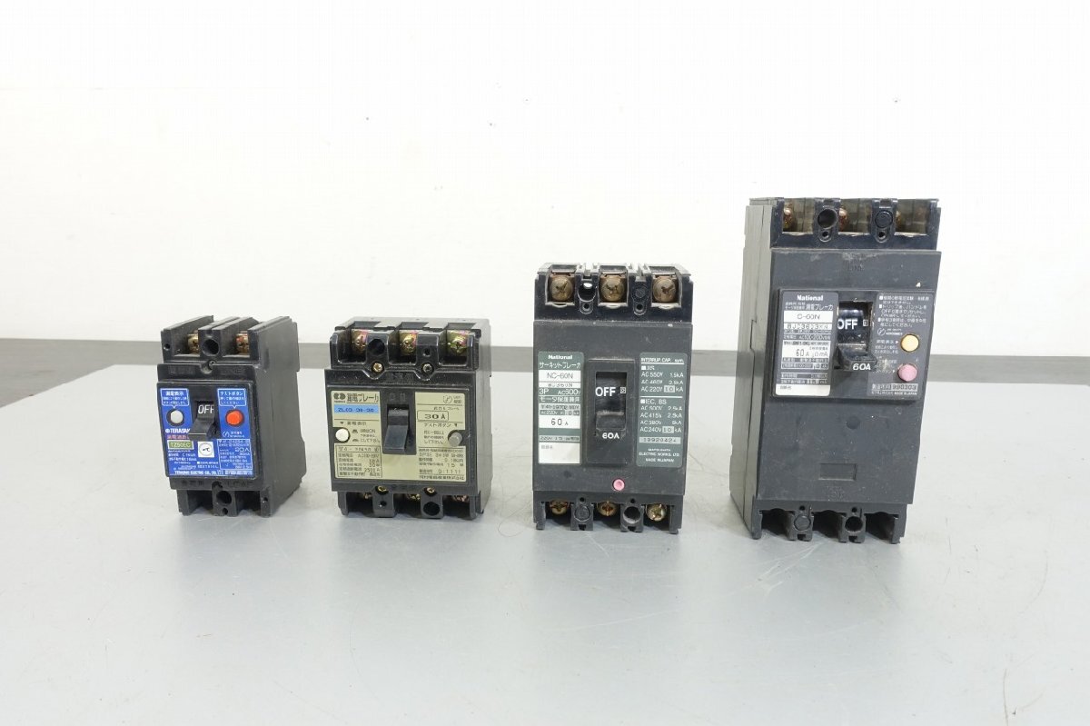 > A 現状渡し 全4個セット 20A/30A/60A/60A ブレーカー サーキットブレーカー 漏電ブレーカー カワムラ ナショナル 200V/100V/600V