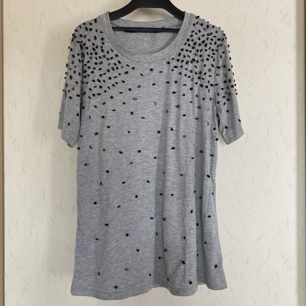 - Ambitious キラキラ ビジュー装飾 グレー 半袖Tシャツ