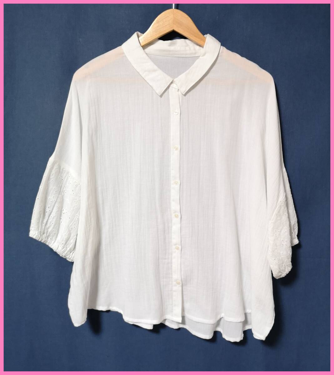 > BLS‐414☆夏☆サンプル品☆送料込み☆即決☆ナチュラル系☆綿レーヨン?☆M~Lサイズ☆ブラウス☆オフホワイト☆透け感有り