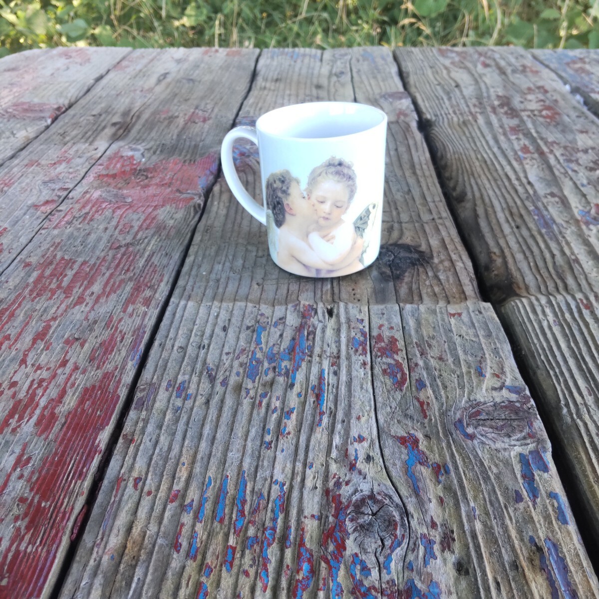 - 昭和レトロ天使Kissアンティーク調陶器マグカップ日本製両面柄有り