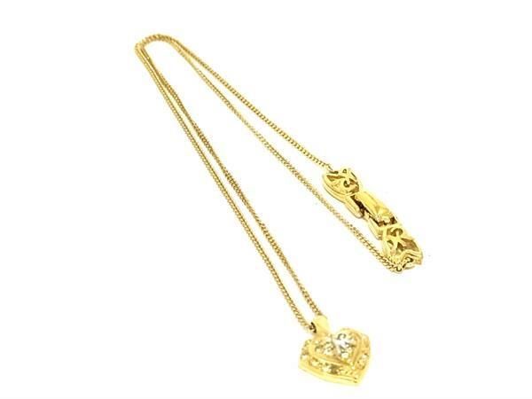 - ■美品■ NINA RICCI ニナリッチ ロゴモチーフ ハート ラインストーン ネックレス ペンダント アクセサリー ゴールド系 DD7083