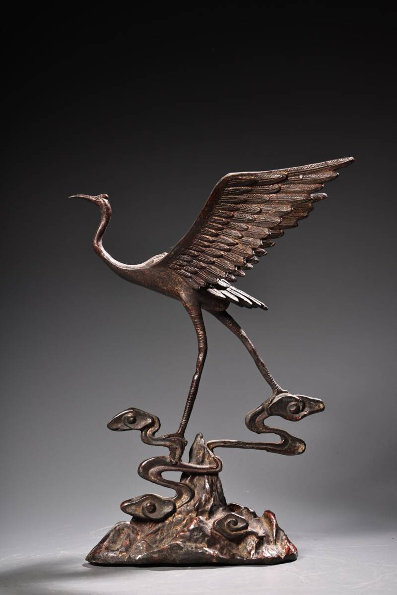 - 蔵友旧蔵出 銅製 浮雕工藝 祥雲飛鶴 希少珍品 貴重品 置物 古賞物 密宗密教 供養品 仏教美術品