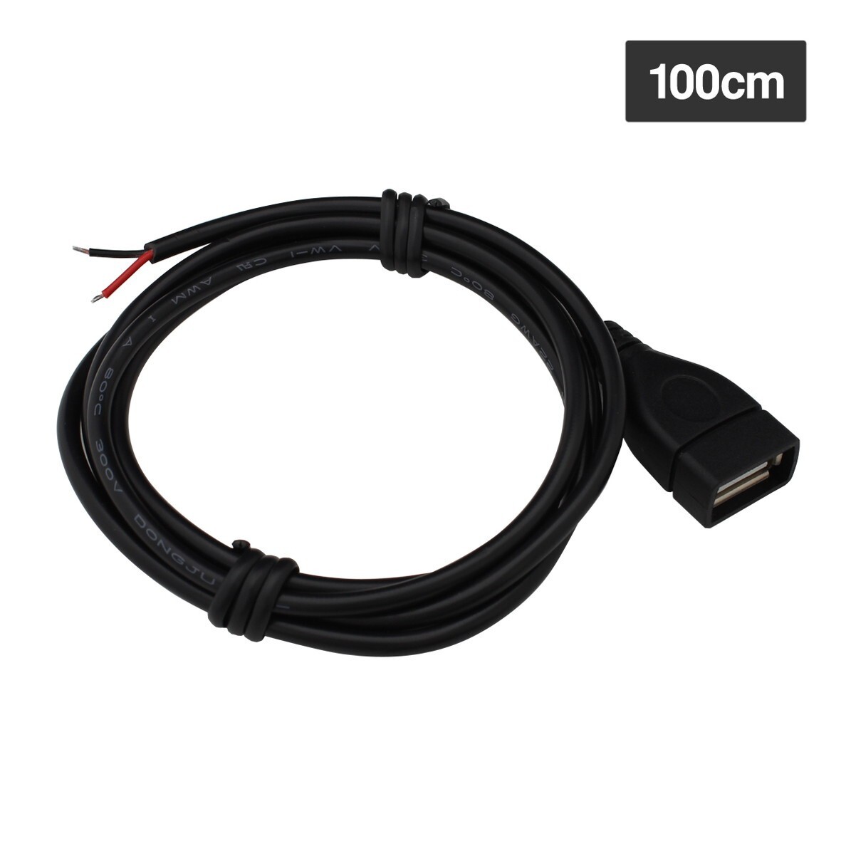 - USB Type-A 切りっぱなし 電源ケーブル 加工用 2線 電子工作 メス 1m