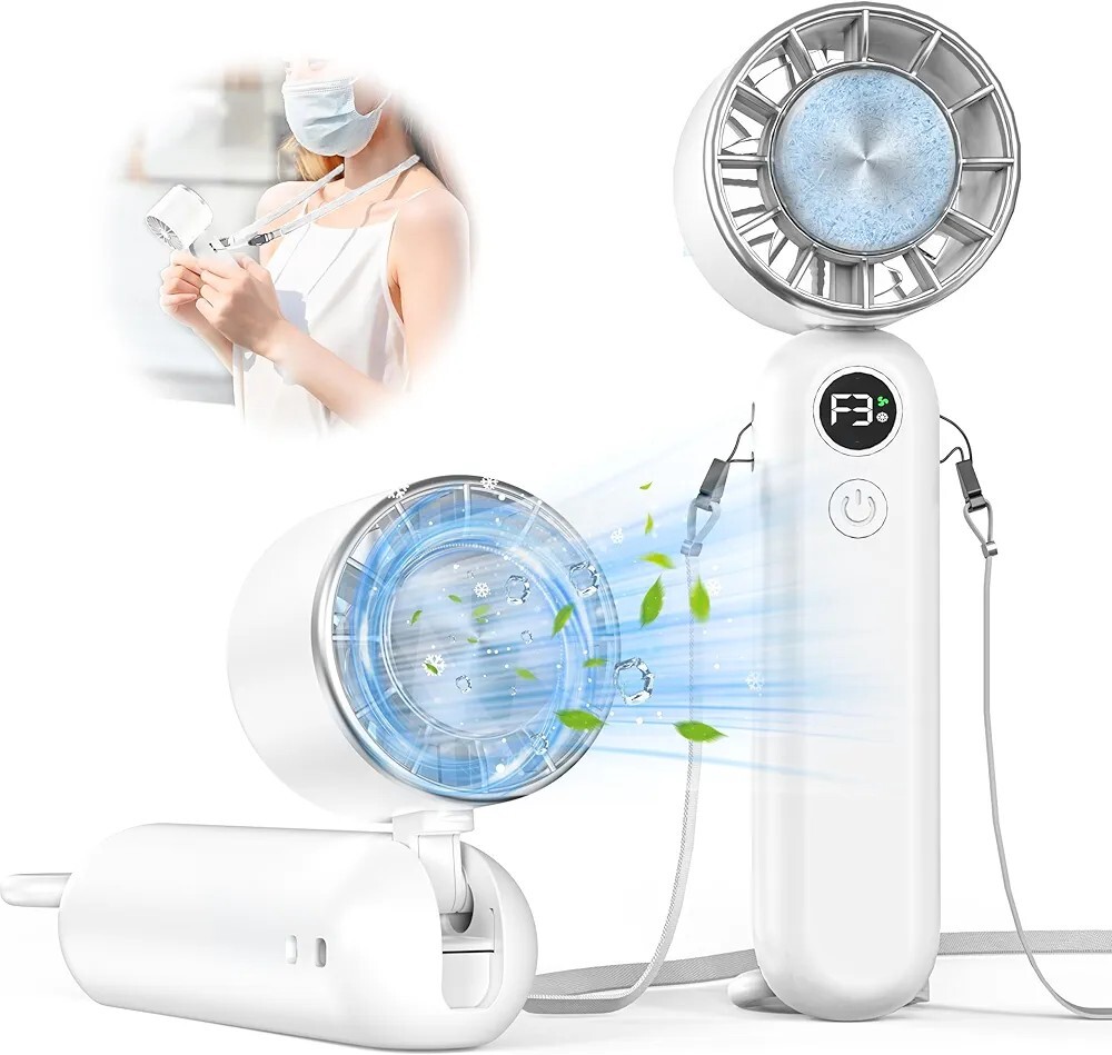 - 【冷却プレート付】ハンディファン 首掛け&卓上両用 首掛けミニ扇風機 強力送風 冷感 手持ち扇風機 熱中症対策 携帯扇風機 ミニファン