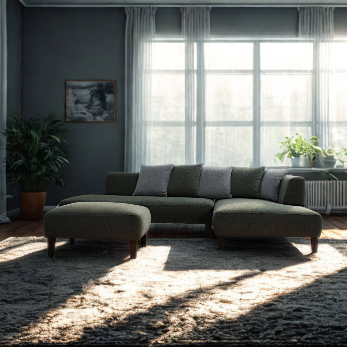 > 送料無料 ソファー ソファ カウチソファ 3人掛け コーナーソファ L字 グリーン 緑 幅249cm 【カウチ座:座って左】ファブリック 179E-2pco