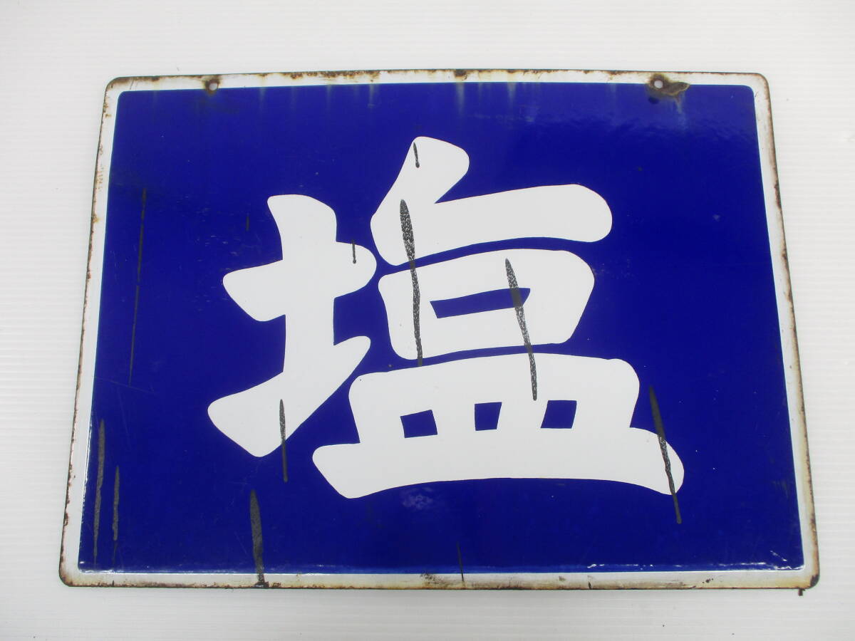 - 2506M3902 昭和レトロ 当時品 ホーロー看板 塩 両面看板 琺瑯看板