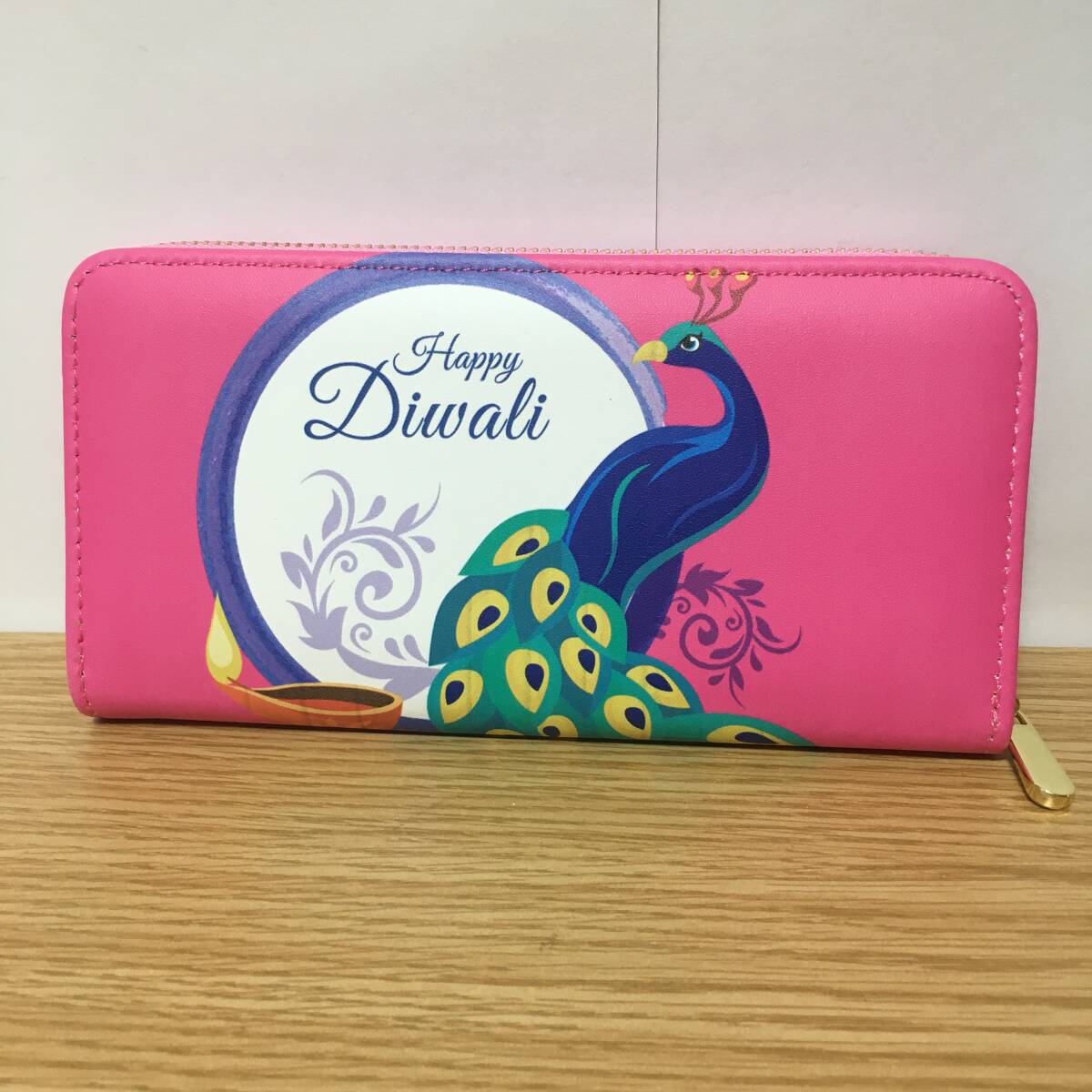 - (未使用) 財布 レディース 長財布 ウォレット 孔雀 ピンク ストラップ付き カラフル 軽量 クジャク