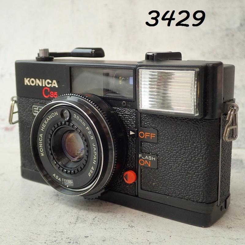 > ●FK-3429 KONICA コニカ C35 EF HEXANON 38mm F2.8 簡易操作OK コンパクトフィルムカメラ 20250729