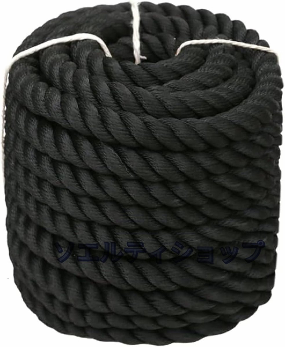 - ボート ロープ 船 用 係留ロープ ブラック 沈むロープ 耐水 耐摩擦 高強度 耐候性 船舶係留ロープ 園芸 運搬引っ越し包装 船適用(16mmx50m)