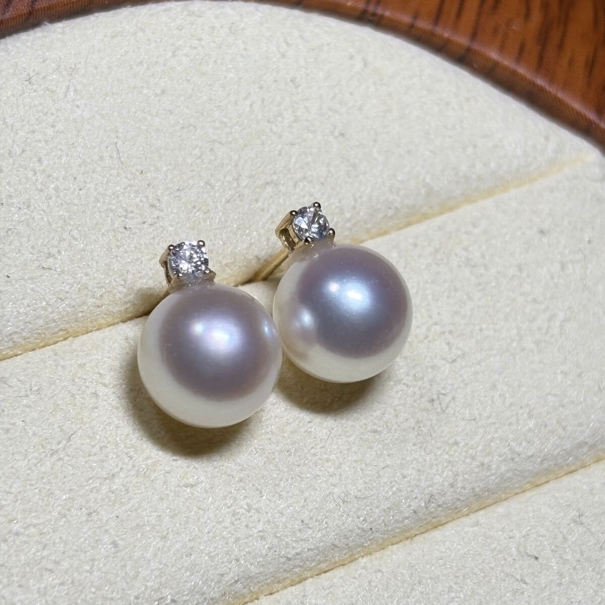 - B96 K14 花珠級 大粒8mm アコヤ真珠 czダイヤ ピアス