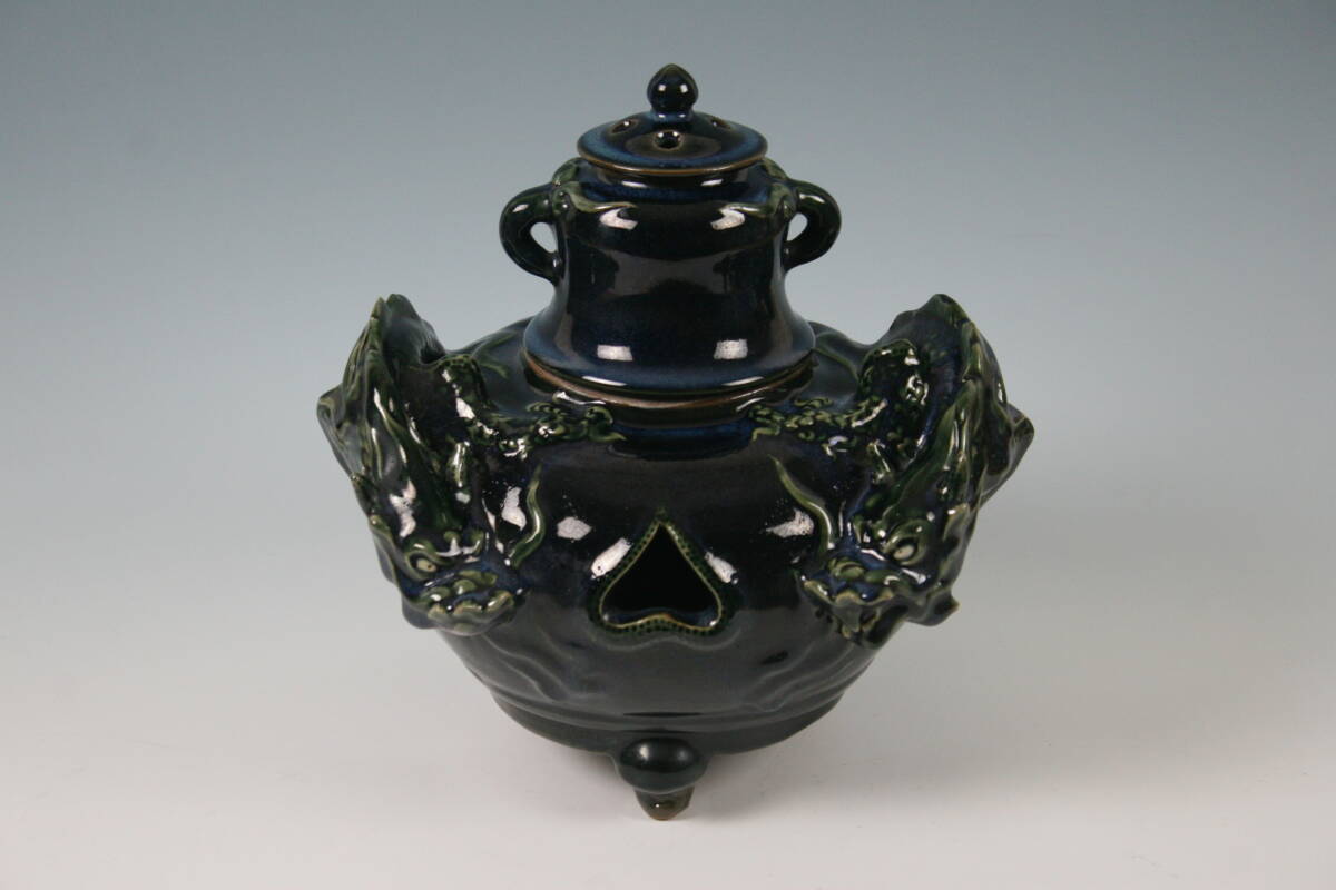 - 壺屋焼 小橋川勇 作 龍巻き丁字風呂(呉須)