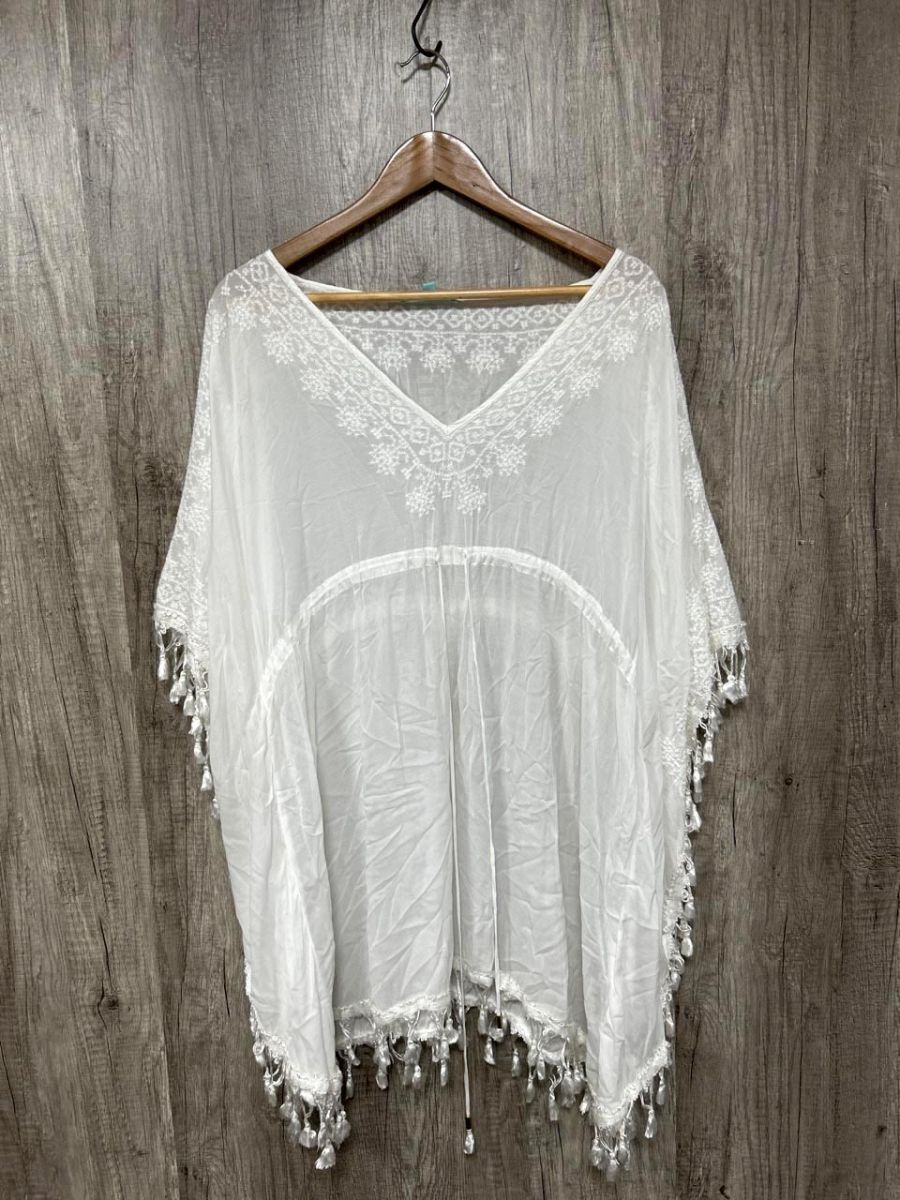 - ネコポスOK MELISSA ODABASH 刺繍 フリンジ レース ポンチョ シャツ sizeF/白 ■◆ レディース