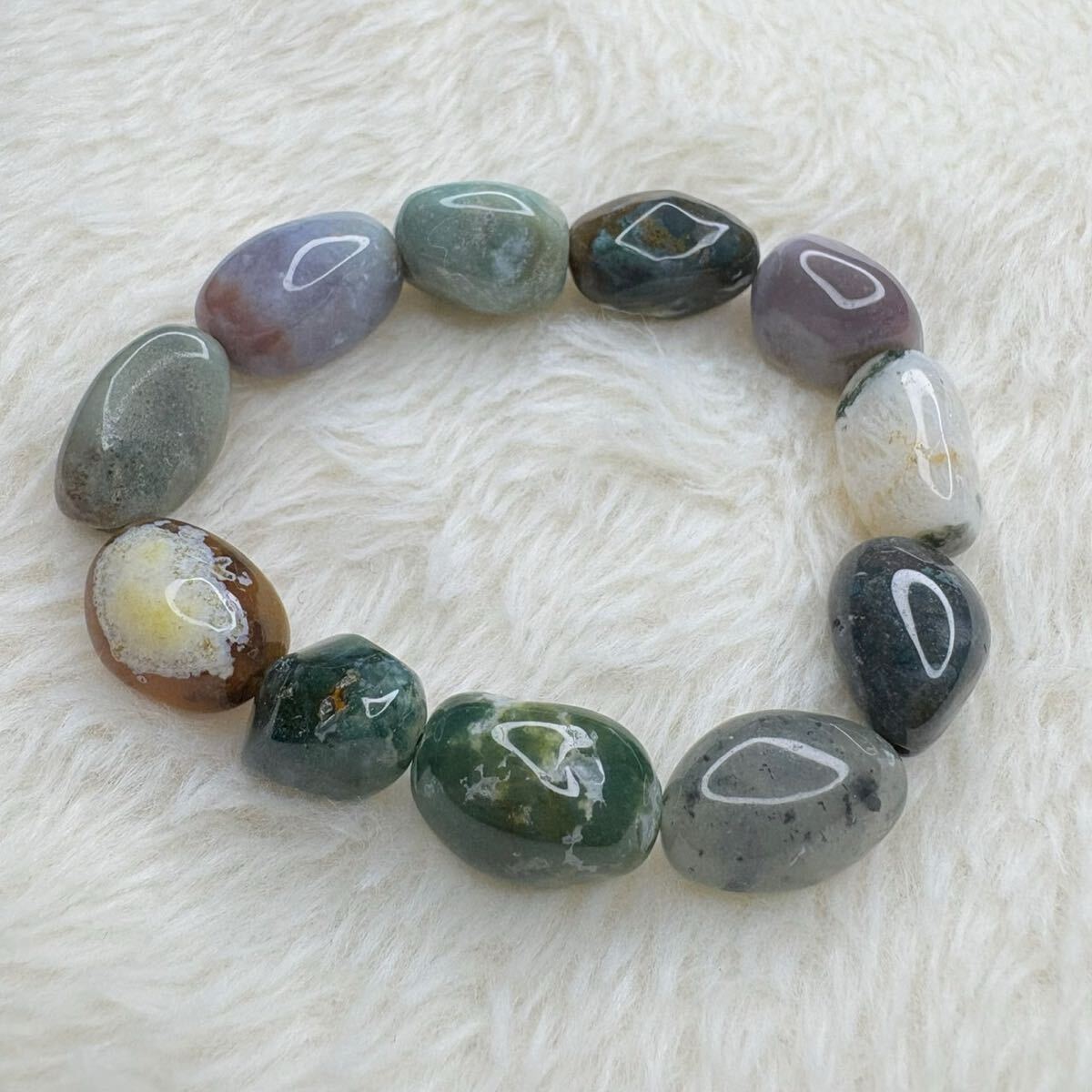 - 天然石 モスアゲート スレイマンアゲート ブレスレット パワーストーン アクセサリー 【728A】