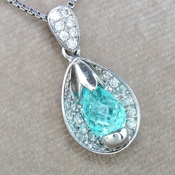 > Pt900 850 パライバトルマリン 1.931ct ダイヤ0.50ct ペンダント付きネックレス 分析報告書付
