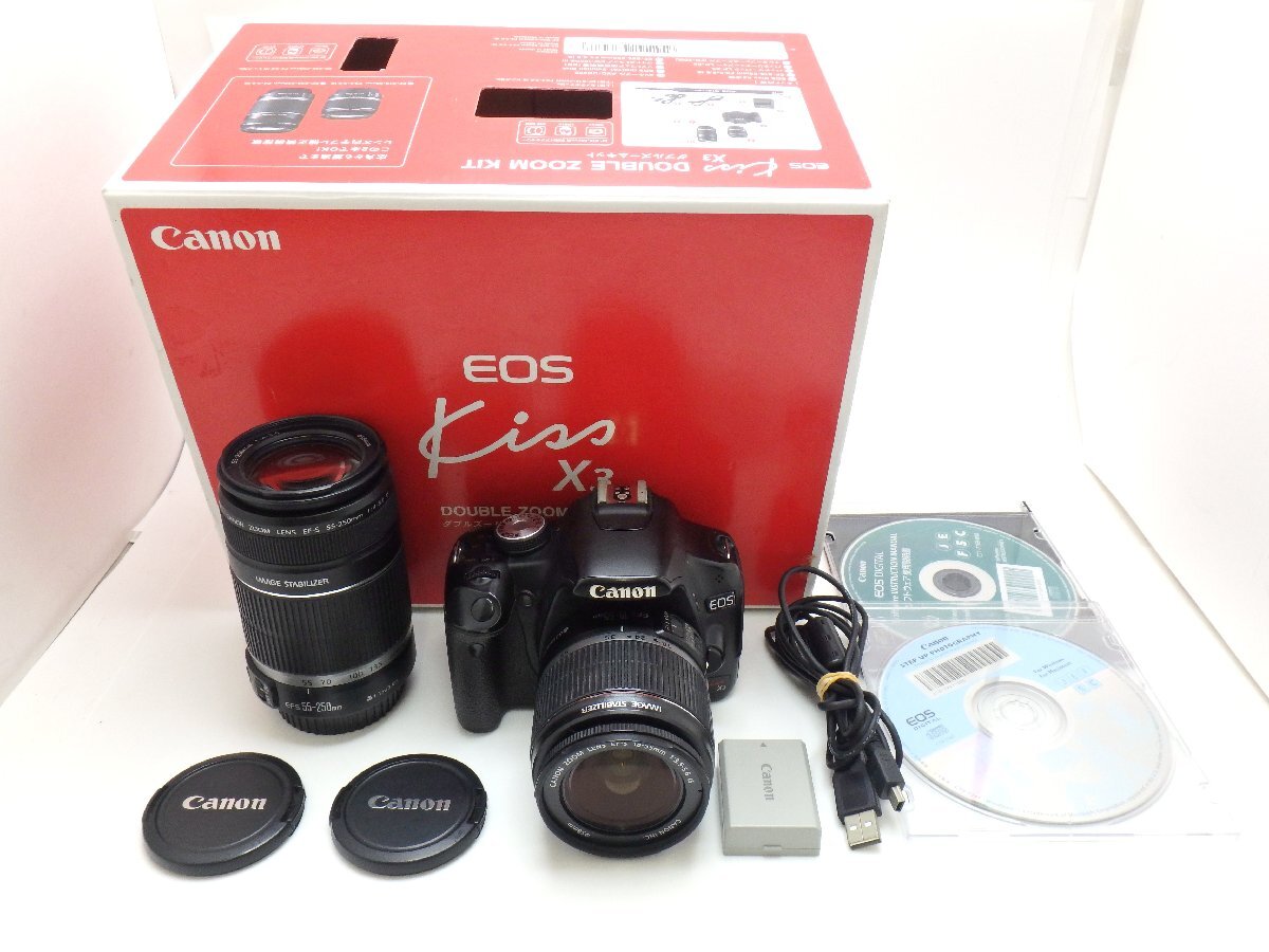 > ★1円★ハローカメラ★ 7648 キャノン Canon EOS Kiss X3 EF-S 18-55mm F3.5-5.6 IS 55-250mm F4-5.6 IS 約1510万画素 動作品 即決あり
