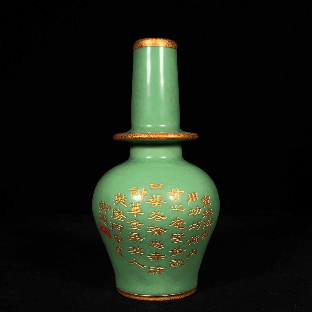 - 蔵友旧蔵出 宋 龍泉窯 梅子青釉 包口 銘文 淨瓶 稀少珍品 貴重品 古陶瓷品 置物 古賞物 中国古玩 中国古美術品