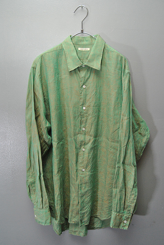 - HEUGN Alan リネンシャンブレーワンピースカラーシャツ ユーゲン アラン 玉虫 グリーン 4