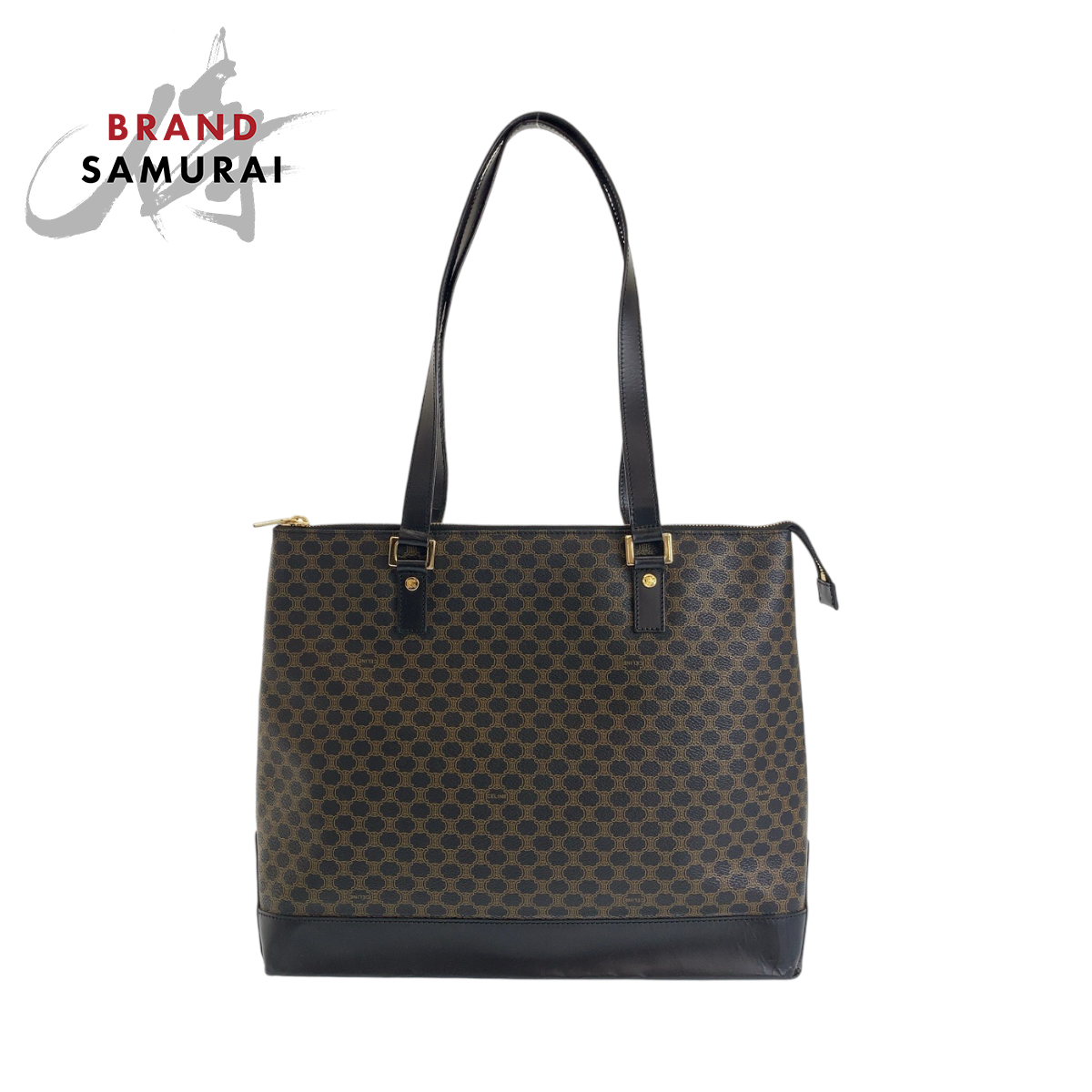 > 美品 CELINE セリーヌ ヴィンテージ マカダム ブラウン ゴールド金具 PVC トートバッグ ショルダーバッグ レディース 504704