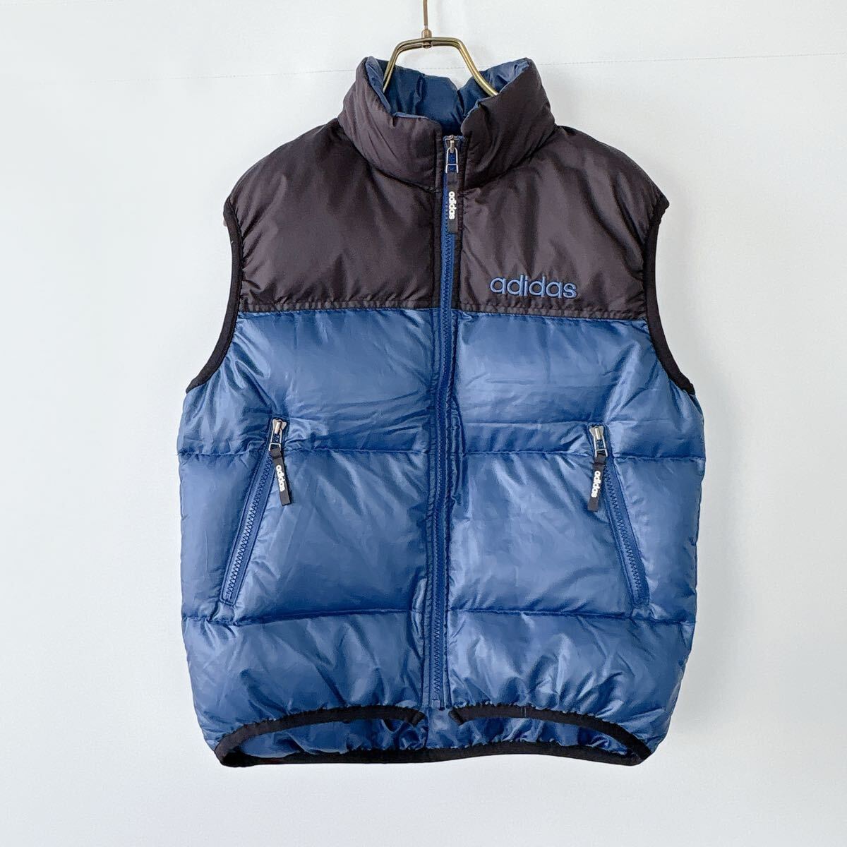 - 【adidas】アディダス 160cm ゆったり ダウンベスト ブルー ブラック 防寒 スポーツ カジュアル