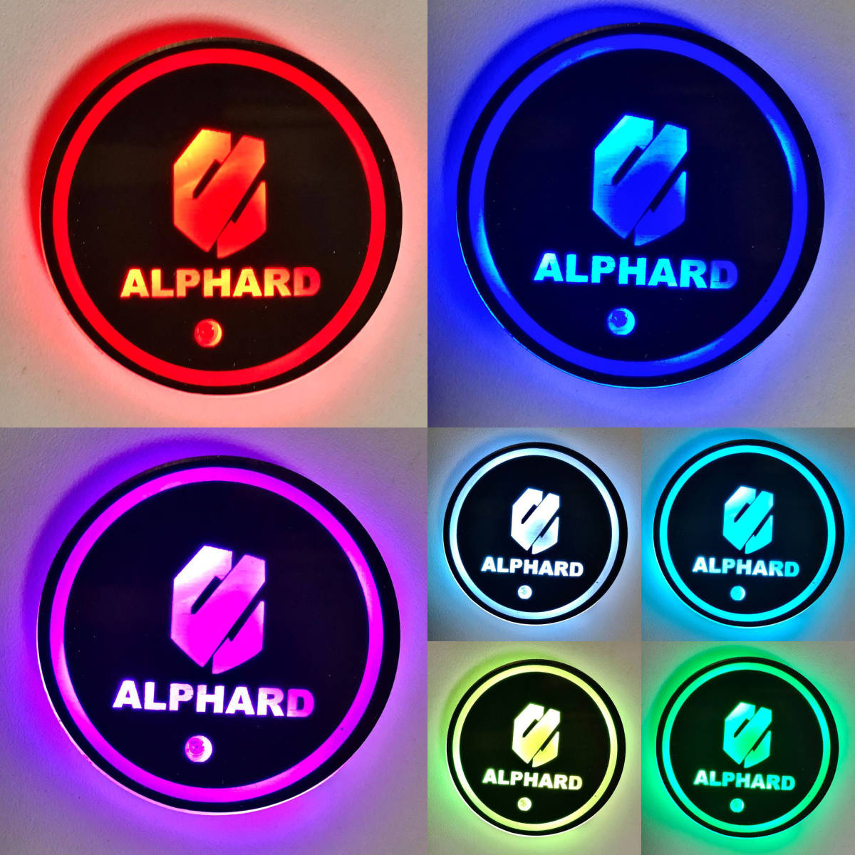 > アルファード車簡単カスタム 光るLEDコースター 2個セット ドリンクホルダー 車内装アクセサリー ALPHARD