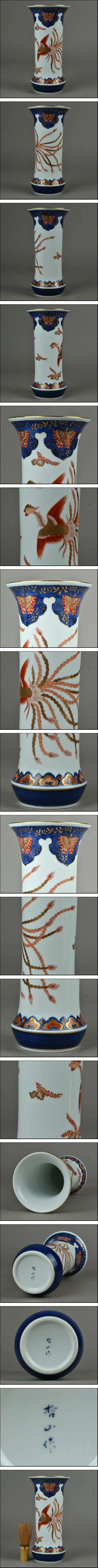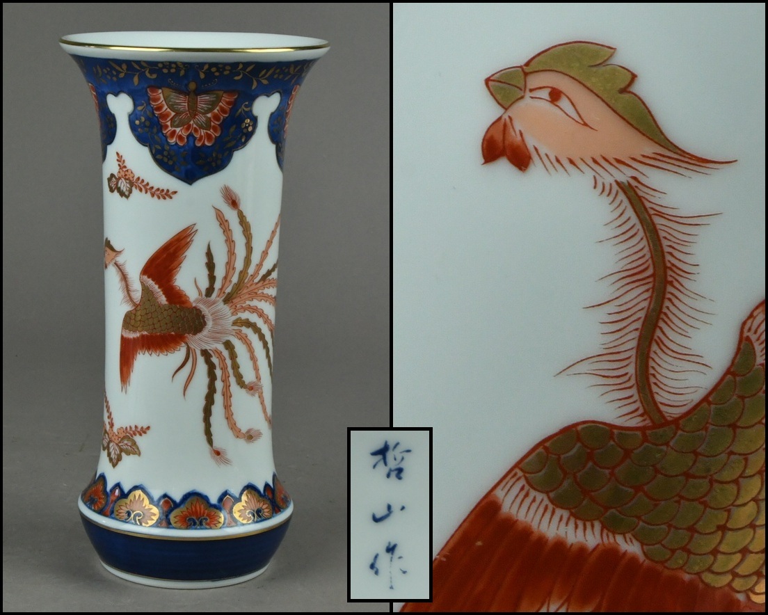 > 【ACT】有田焼【哲山作】金彩色絵 鳳凰図 尊式 花瓶 花入 飾壷 美術品 高さ24.5cm A7-729D