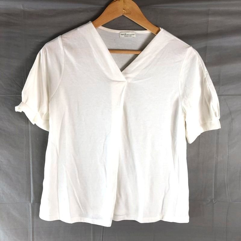 > アースミュージック&エコロジー earth music&ecology Premium Label カットソー 半袖 Vネック 綿 白 Fサイズ 2025071000146