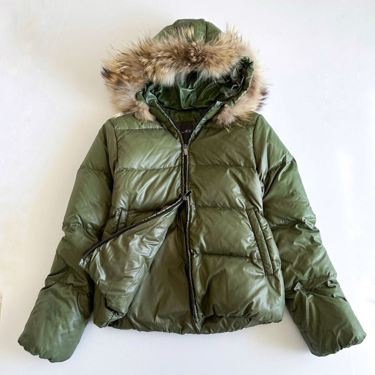 > ★ DUVETICA デュベティカ / ショートダウン 42 カーキ フードファー 緑 ラクーンファー ADHARA アダラ