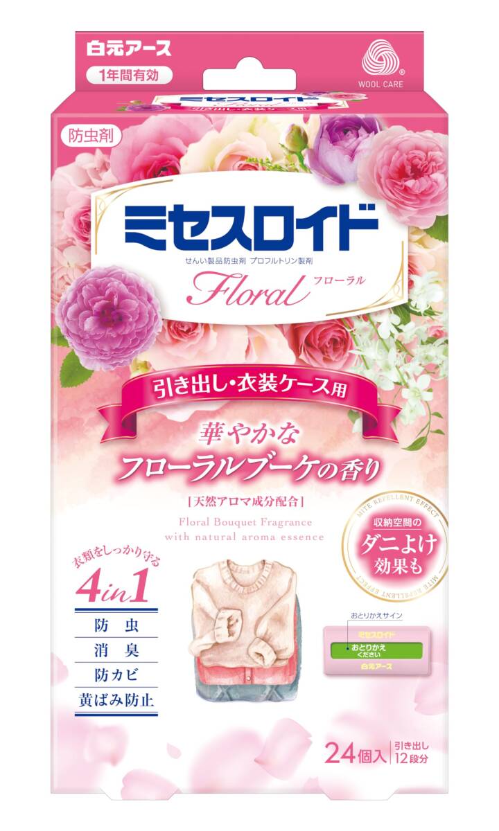 - ミセスロイドフローラル引き出し用24個入 1年防虫 フローラルブーケの香り 容量24コ防虫剤