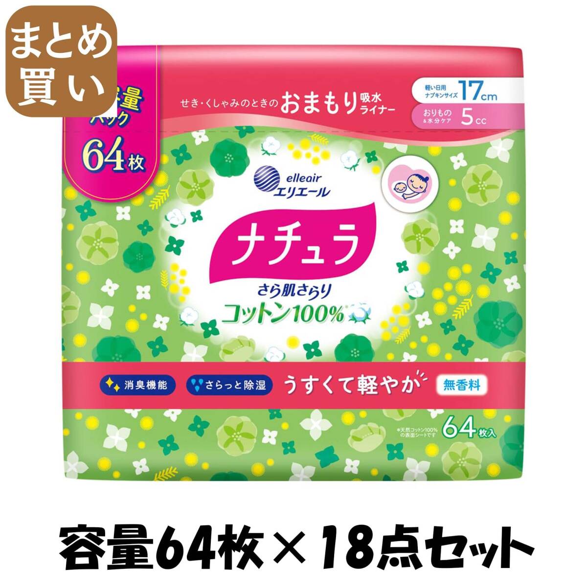- 【まとめ買い】ナチュラさら肌さらりコットン100%軽やか吸水パンティライナー17cm5cc大容量64枚容量64マイ×18点セット生理用品