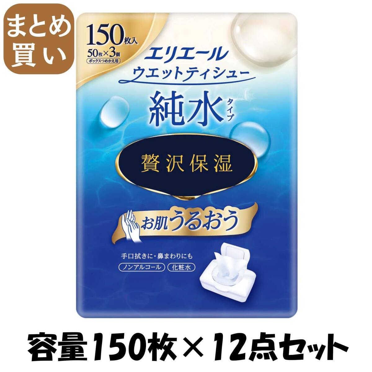 - 【まとめ買い】エリエールウェットティシュー 純水タイプ ぜい沢保湿 詰替え50枚×3パック 容量150マイ×12点セット大王製紙