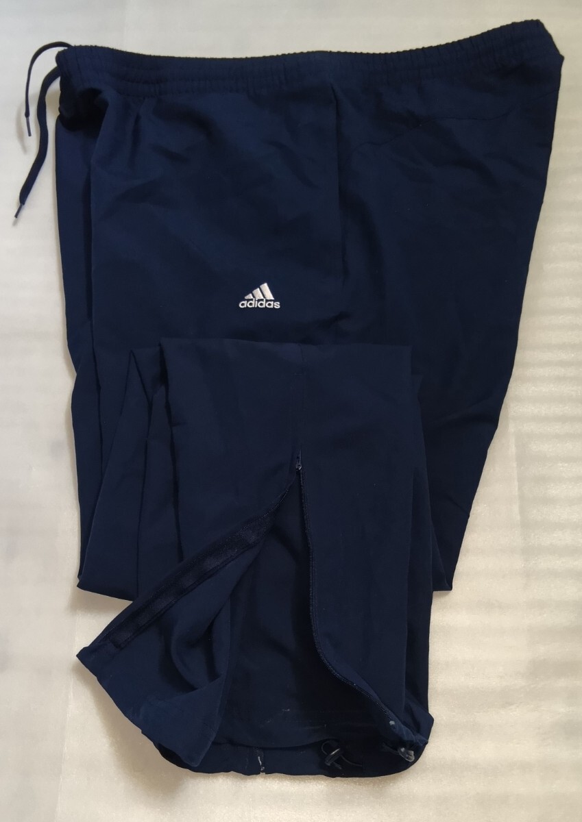 > ☆adidas.com サイズL(ジャパン2XO)パンツ長ズボンCLIMALITEロング紺色ネイビー白刺繍ボトムス裾口ジッパー+ドロスト☆スポーツ アディダス