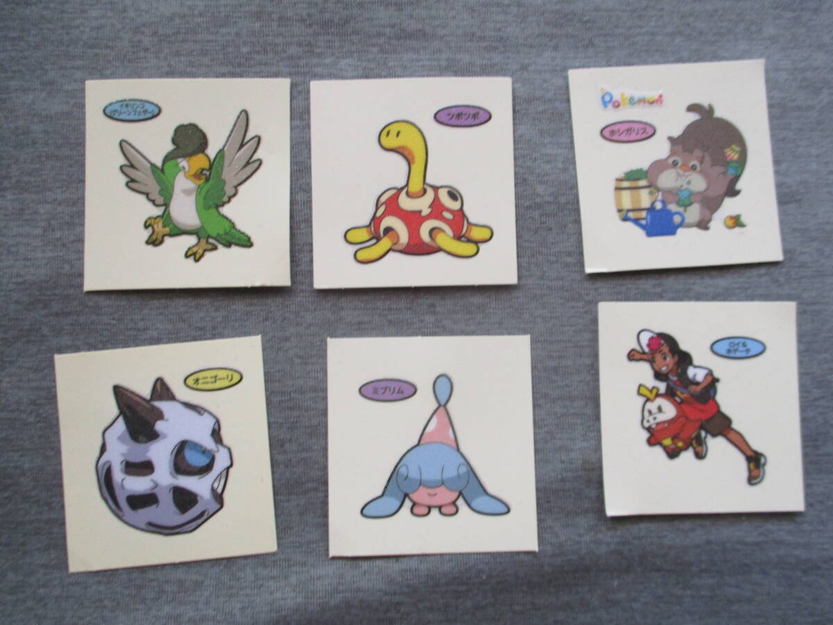 - 送料110円ポケモンシール6枚第一パンポケモンおまけオニゴーリツボツボイキリンコ(グリーンフェザー)ミブリムロイ&ホゲータホシガリス