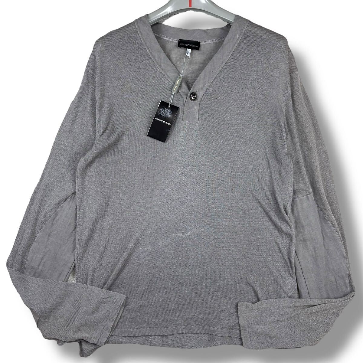 - 1円 未使用タグ付き良品 XL.LL エンポリオアルマーニ EMPORIO ARMANI サマーニットセーター リネン混 麻 ストレッチ メンズ グレー 春夏