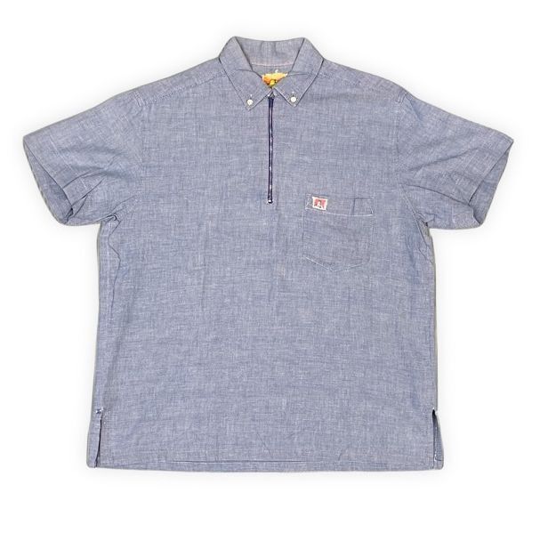 - 70's 80’s 黄タグ ベンデイビス BEN DAVIS シャンブレーシャツ ハーフジップ ボタンダウン [la-1365]