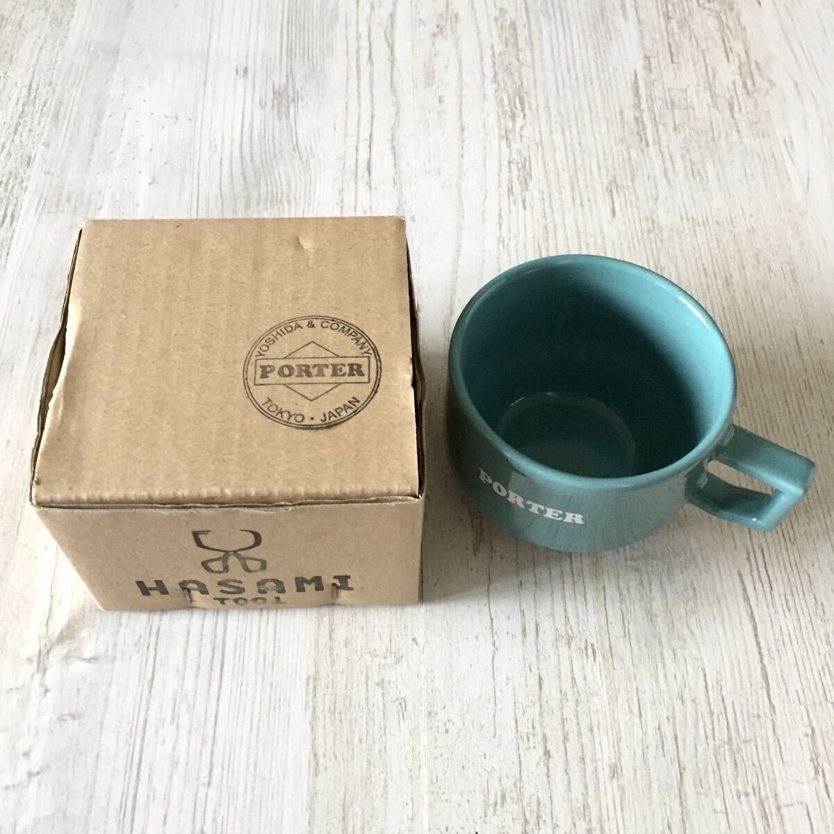 - 未使用 YOSHIDA&CO.,LTD. PORTER HASAMI Mug 吉田カバン ポーター ハサミ マグカップ 別注アイテム 非売品 ノベルティ 日本製 長崎 陶磁器