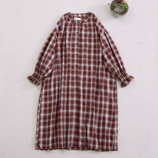 > lb 0708 カーディガン シャツワンピース フリーサイズ チュニック トップス ナチュラル 綿100% コットン 大人可愛 チェック柄3
