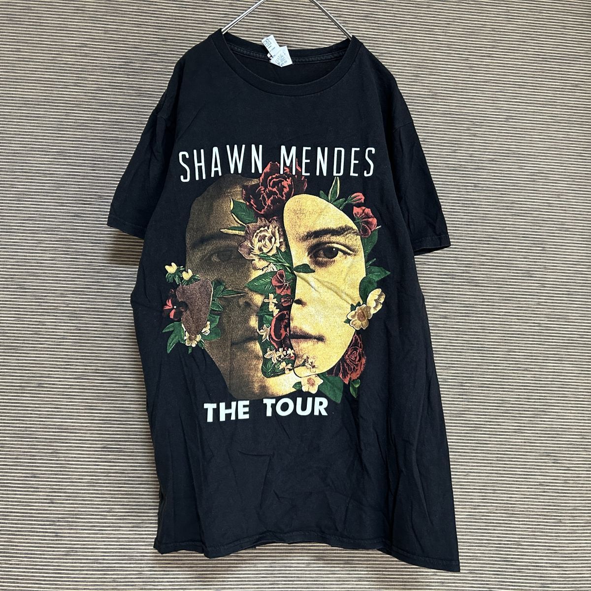 > ショーンメンデス 半袖Tシャツ バンド 黒 バラ 花柄 ツアーT *2 古着 入手困難 激レア 希少 人気 ミュージシャン デカロゴ