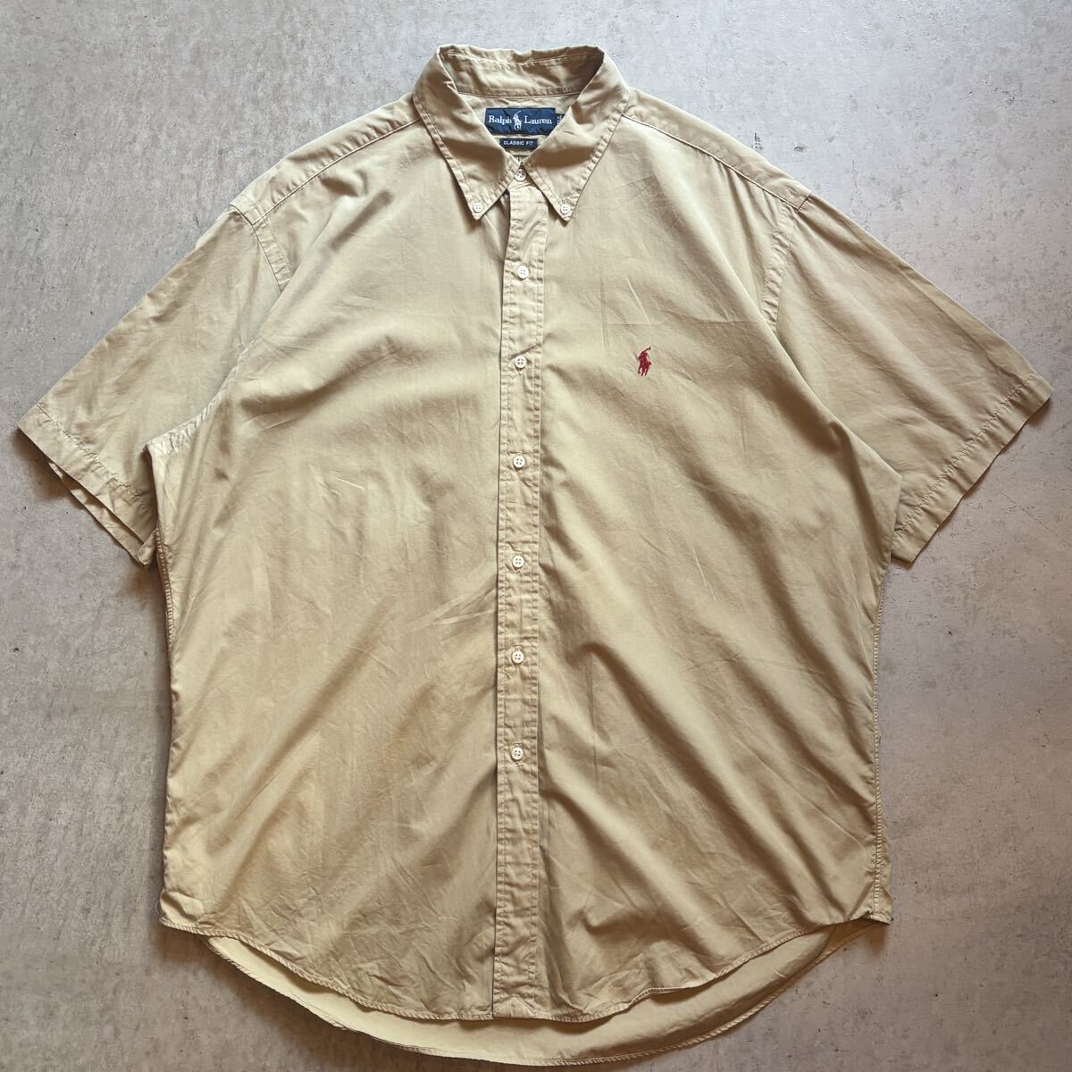 - 【90s】00s POLO RALPH LAUREN ポロラルフローレン ボタンダウン 半袖シャツ ベージュ メンズ XL CLASSIC FIT ロゴ 刺繍 vintage 正規品