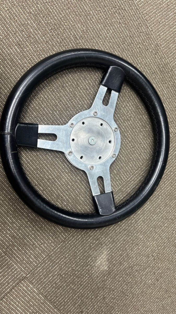 > レア MOUNTNEY(マウントニー)レザーステアリング 330mm 33センチ モモ変換 検(Moto-litaモトリタLECARRAレカラminiミニクーパーハンドル
