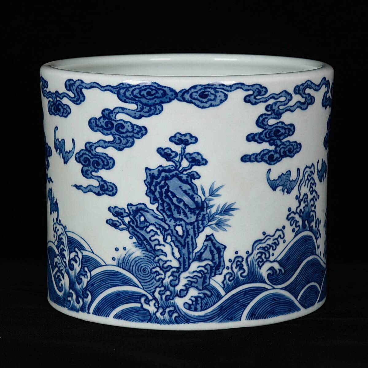 - 『館蔵珍品 清 乾隆年製款 古陶瓷品 青花 福寿海石靈芝紋 筆筒 陶藝』稀少珍蔵品 古賞物 貴重物品 収蔵品 中国古美術 時代物 古董品