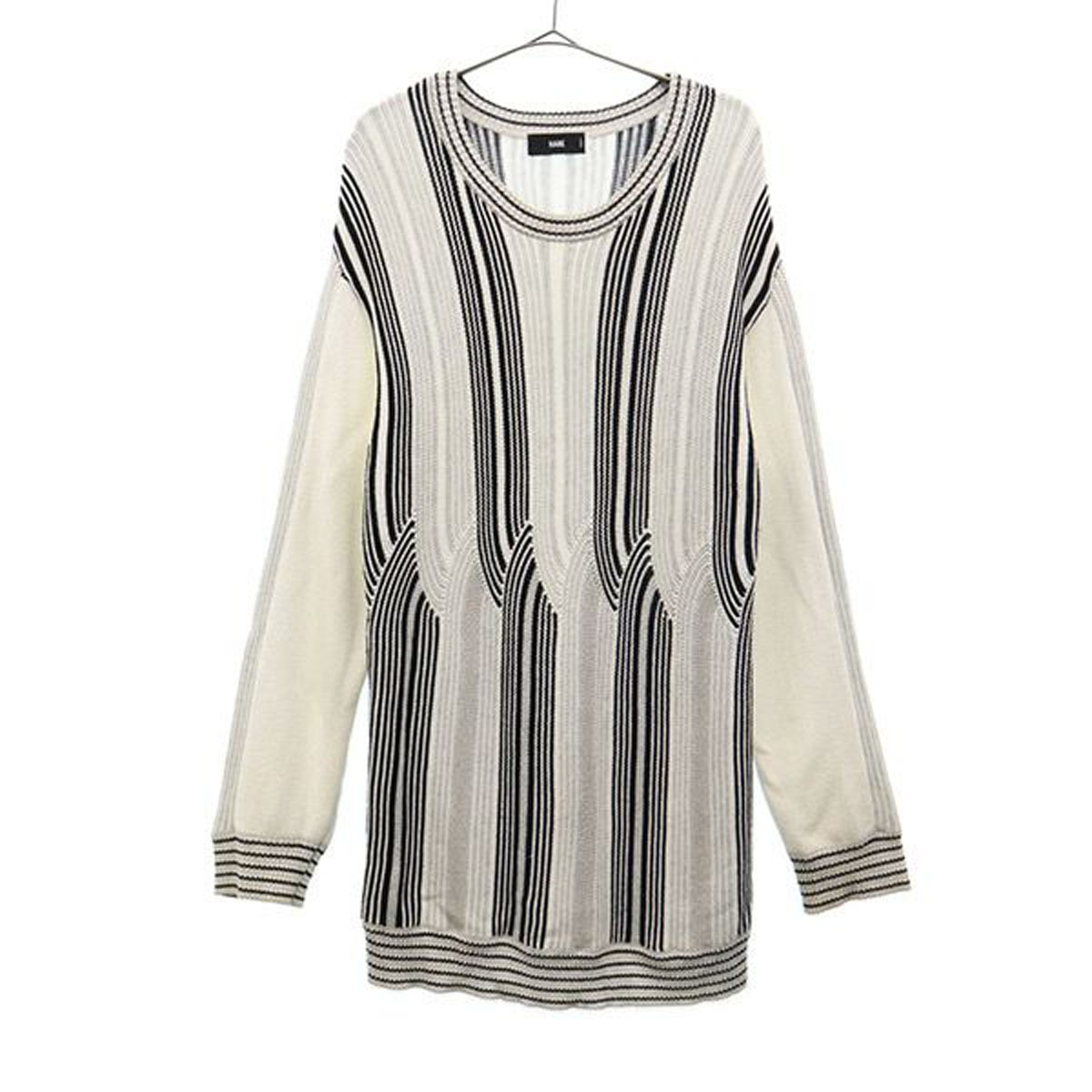 HARE ハレ ストライプ 長袖 ロング ニット M グレー系 セーター メンズ拍卖