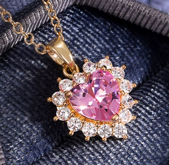 - 綺麗 ハートペンダント ネックレス レディース ピンクダイヤモンド 輝き抜群 アクセサリー チェーン付き