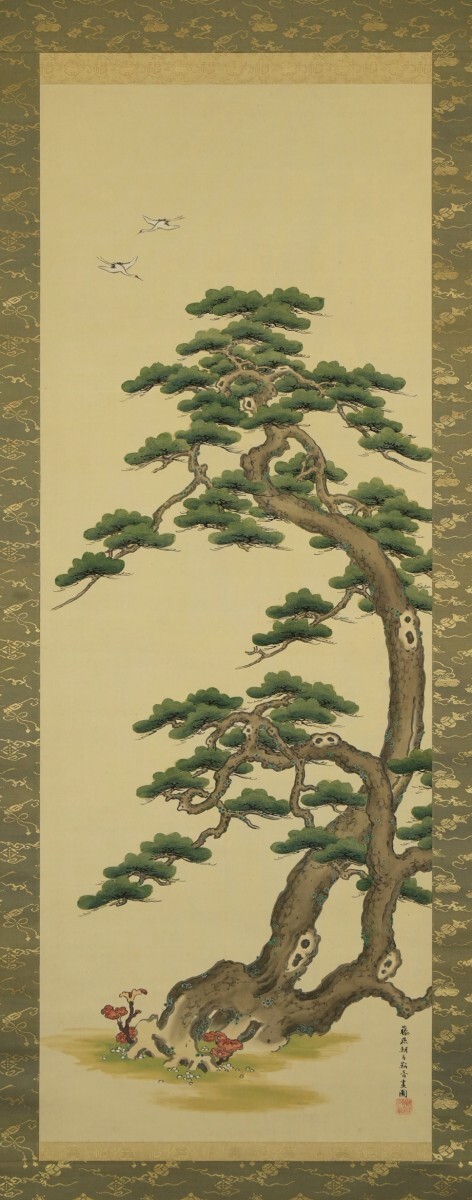 - 【真作】掛軸「小堀鞆音 相生老松図」共箱 明治昭和 日本画家 川崎千虎師事 日本美術院 安田靫彦・川崎小虎・尾竹国観師 東美校助教授 絵画